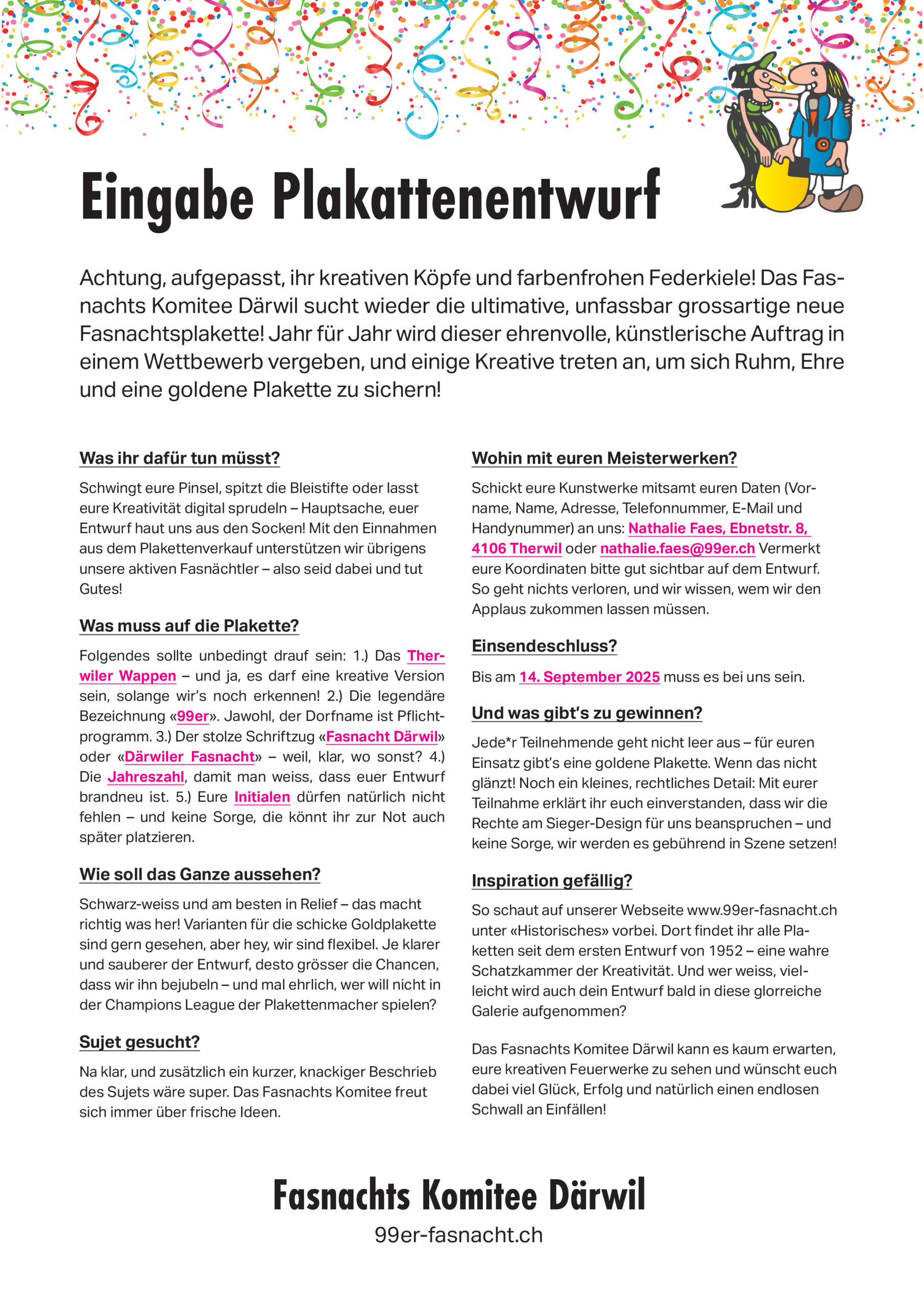 Melde dich für den 99er-Mailverteiler an, um rund um die Fasnacht informiert zu sein.