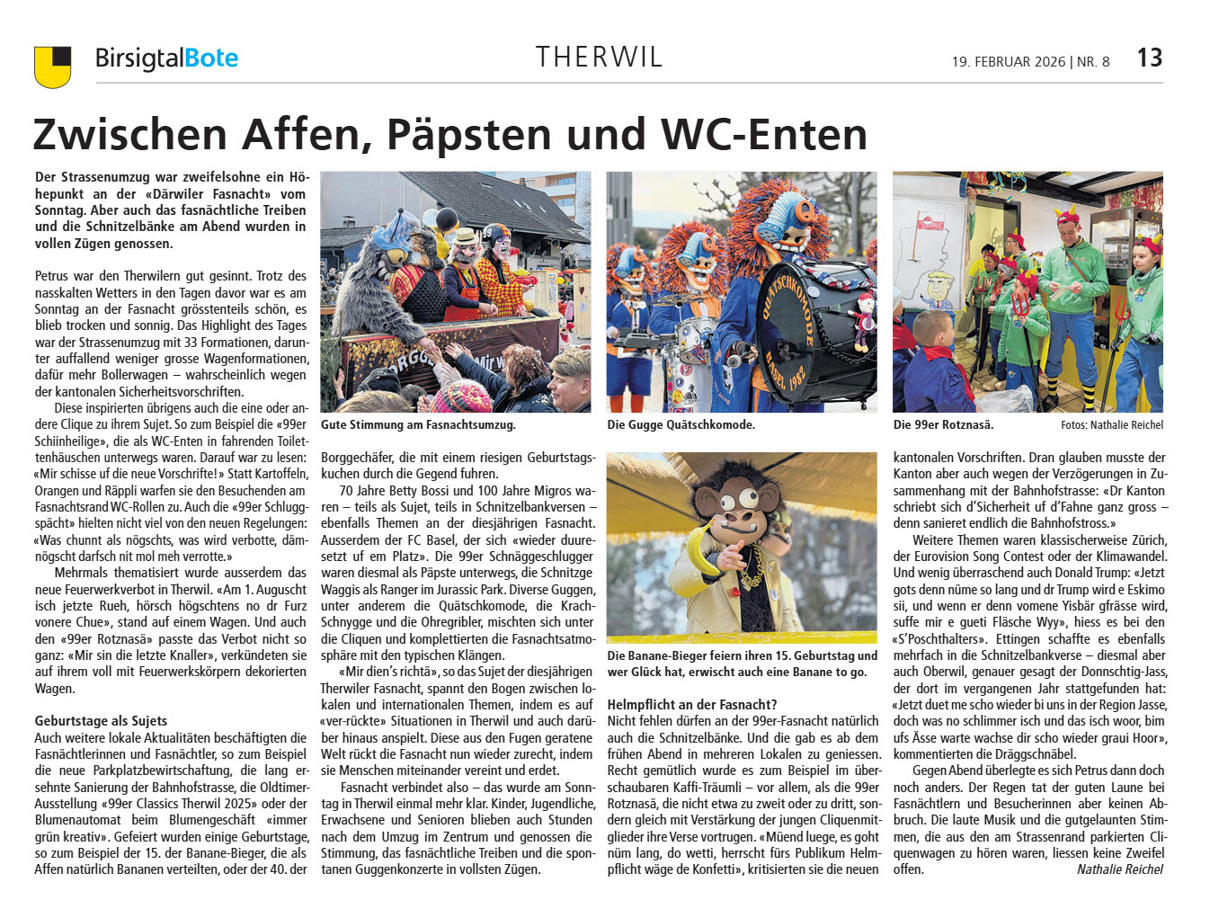 Ein riesiges MERCI an alle, die diesen Abend möglich gemacht haben – von den grandiosen Künstler:innen über das Fasnachts Komitee Therwil bis zu euch, dem fantastischen Publikum! Därwil, ihr habt Fasnachtsgeschichte geschrieben!